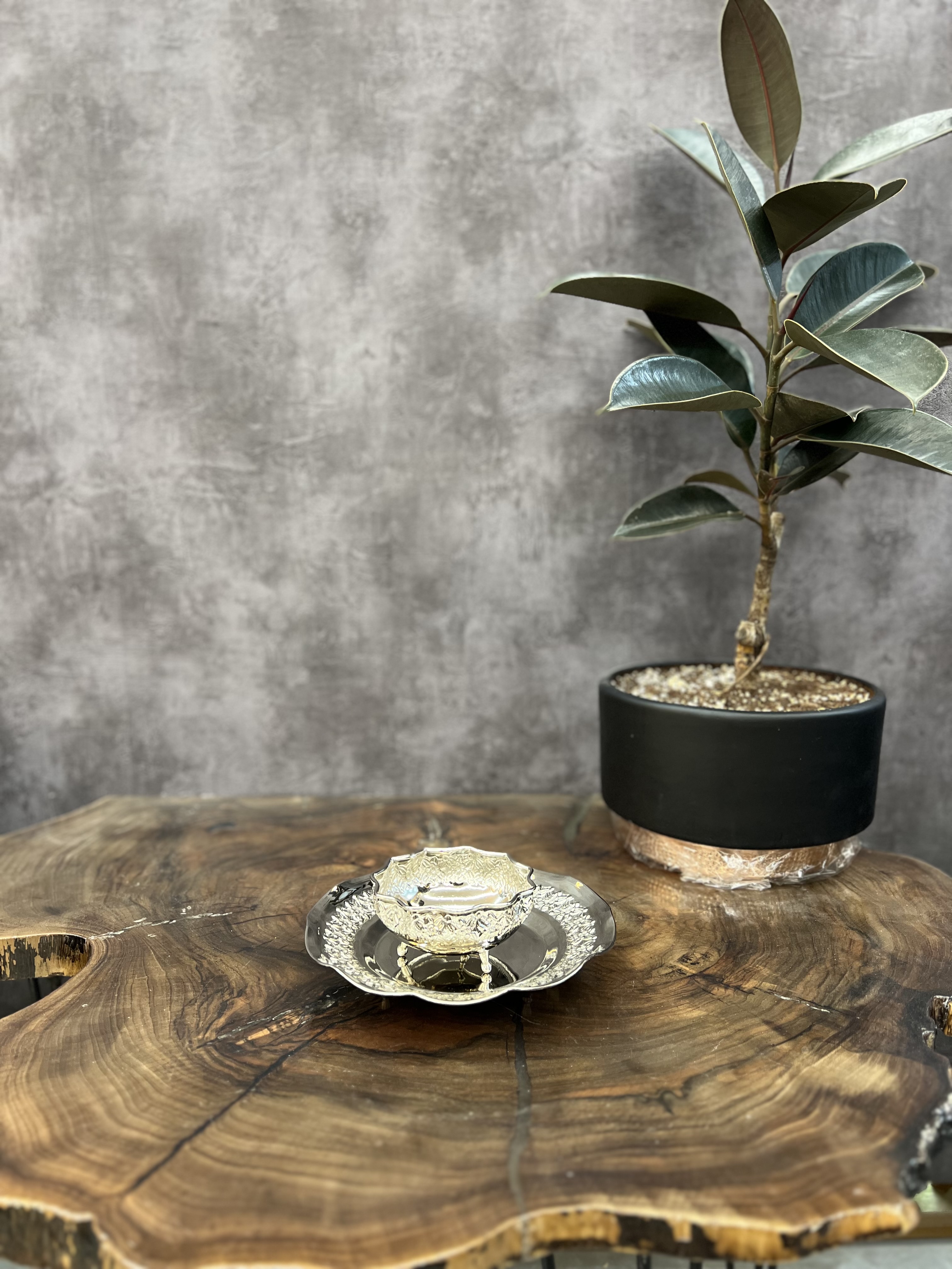 ‌پیاله سه پایه مسی روکش کروم رز مس