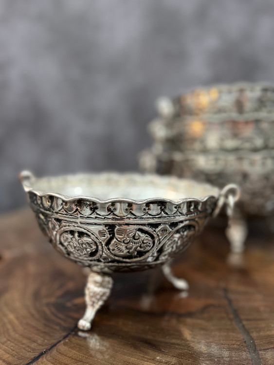کاسه سه پایه مسی سیاه قلم دوروسفید