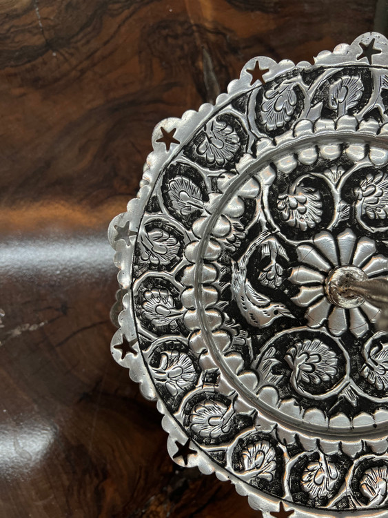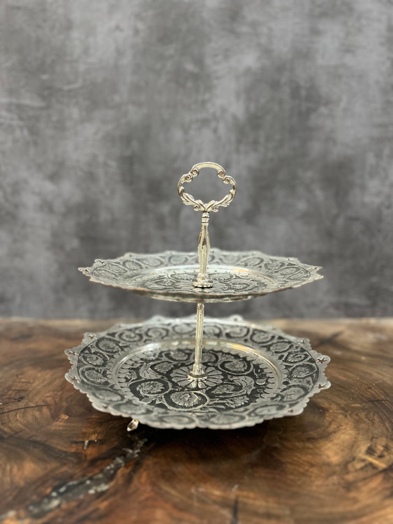 شیرینیخوری دو طبقه مسی سیاه قلم یک انتخاب عالی برای میزهای پذیرایی است که نه تنها جلوهای زیبا به دکور خانه میبخشد، بلکه با طراحی منحصر به فرد خود، برای سرو شیرینیها و دسرهای مختلف مناسب است.