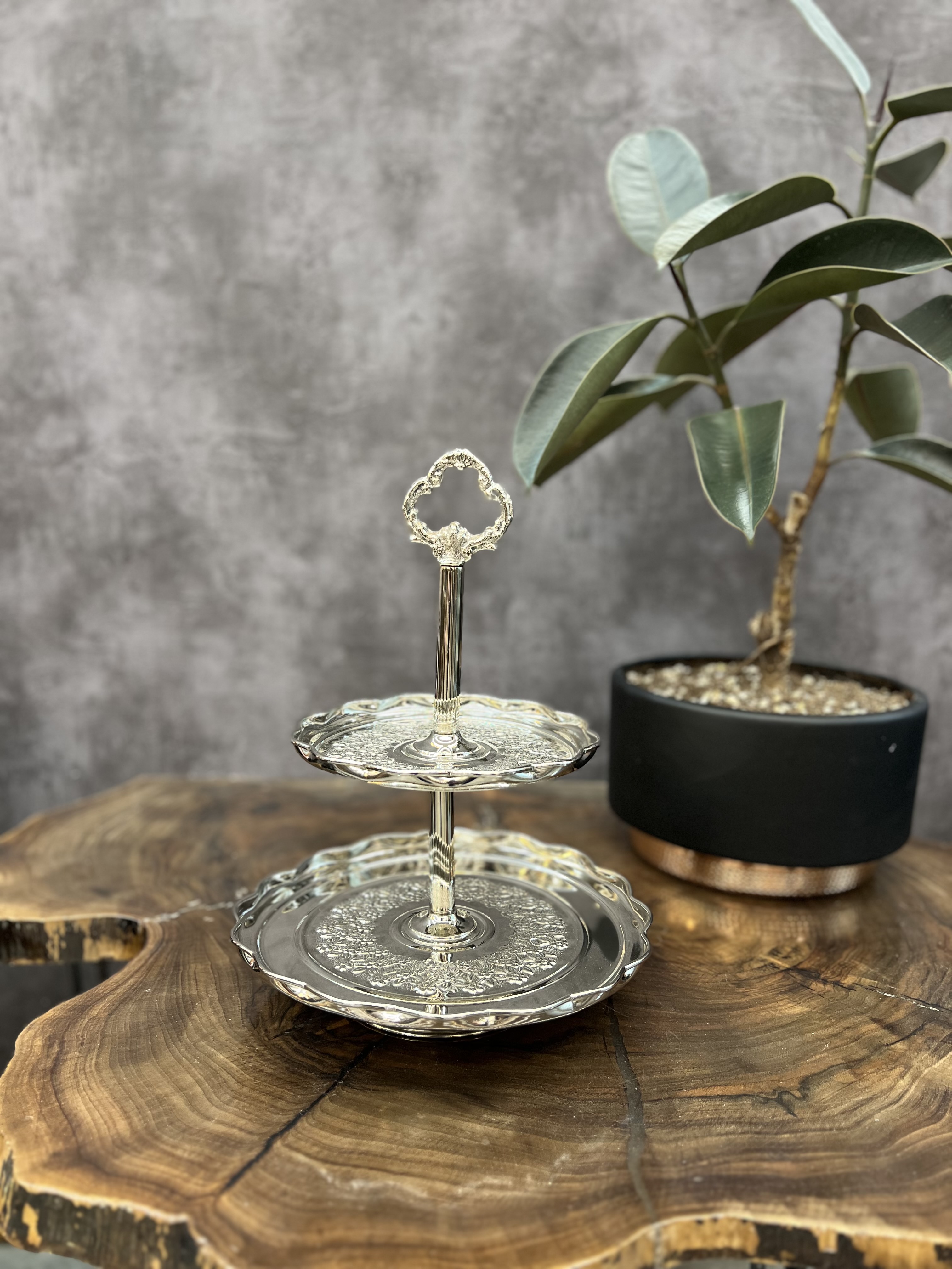 شیرینی خوری مسی دو طبقه سیاه قلم۲٬۹۰۰٬۰۰۰ تومان
